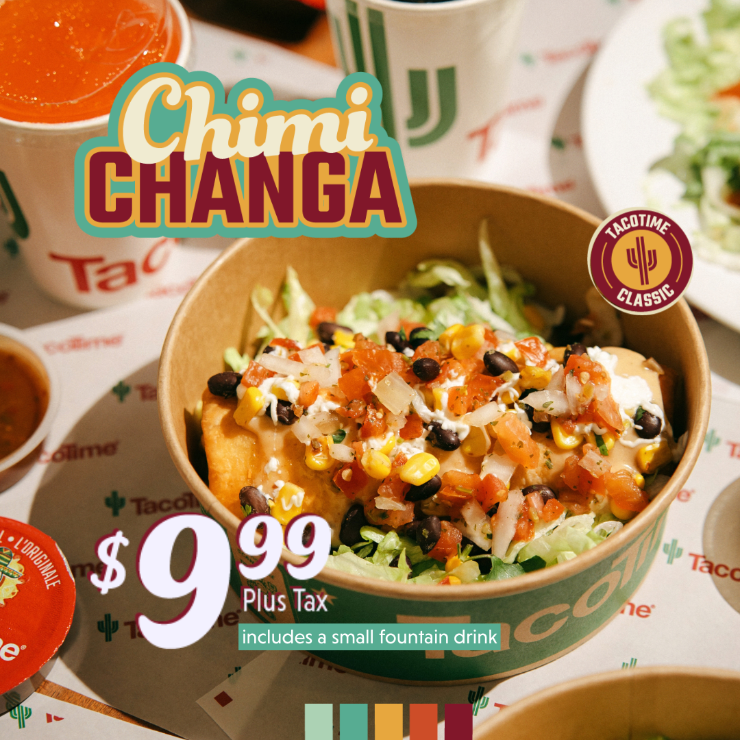 TacoTime is bringing back the Chimichanga! Enjoy it for just $9.99-includes a small fountain drink.